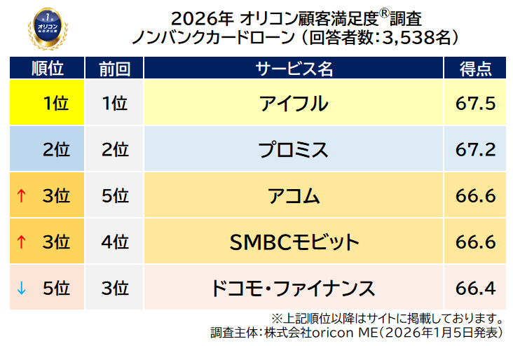 2026年 オリコン顧客満足度®調査 ノンバンクカードローン