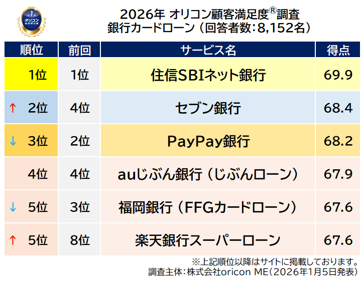 2026年 オリコン顧客満足度®調査 銀行カードローン