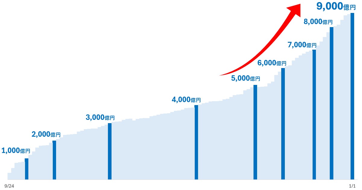 新しい年を迎え、NISA活用や資産形成への関心が高まる中で、SBI証券との連携サービス「SBIハイパー預金」の新規お申込みは一段と活発化しております。2025年9月のサービス取扱開始以降、多くのお客さまからのご支持を賜り、残高増加は好調な推移を続けており、2026年1月1日には残高9,000億円を突破しました。