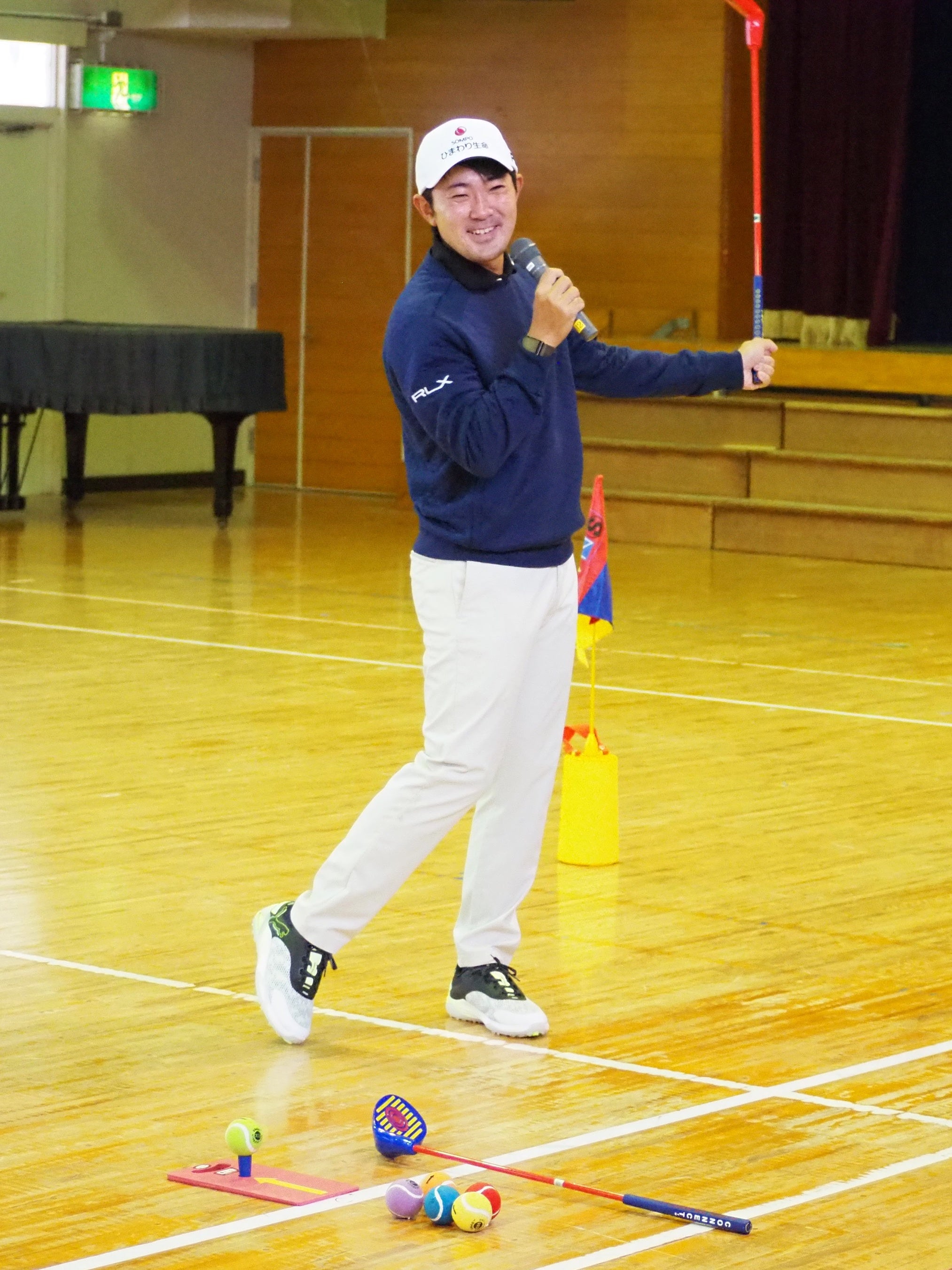 SOMPOひまわり生命保険株式会社(代表取締役社長:久米 康樹、以下「当社」)は、当社の所属選手であるプロゴルファー金谷拓実プロとともに、2025年12月24日(水)に広島県呉市立昭和北小学校にて、小学生を対象としたゴルフ体験イベント「金谷拓実プロ×SOMPOひまわり生命~金谷拓実プロとゴルフをやってみよう!」を開催しました。