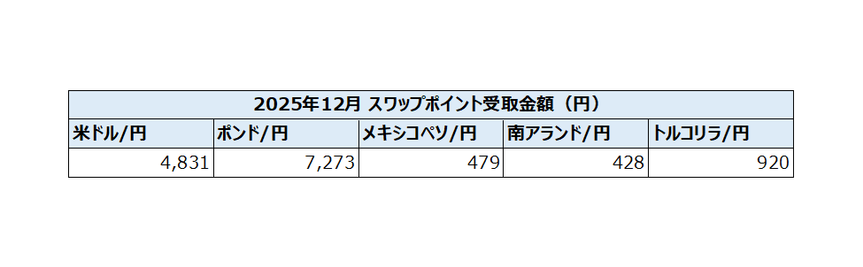 SBI FXトレード株式会社(本社:東京都港区、代表取締役社長:藤田 行生、以下「当社」)は、2025年12月のFX取引におけるスワップポイントの実績を公表しましたことをお知らせいたします。