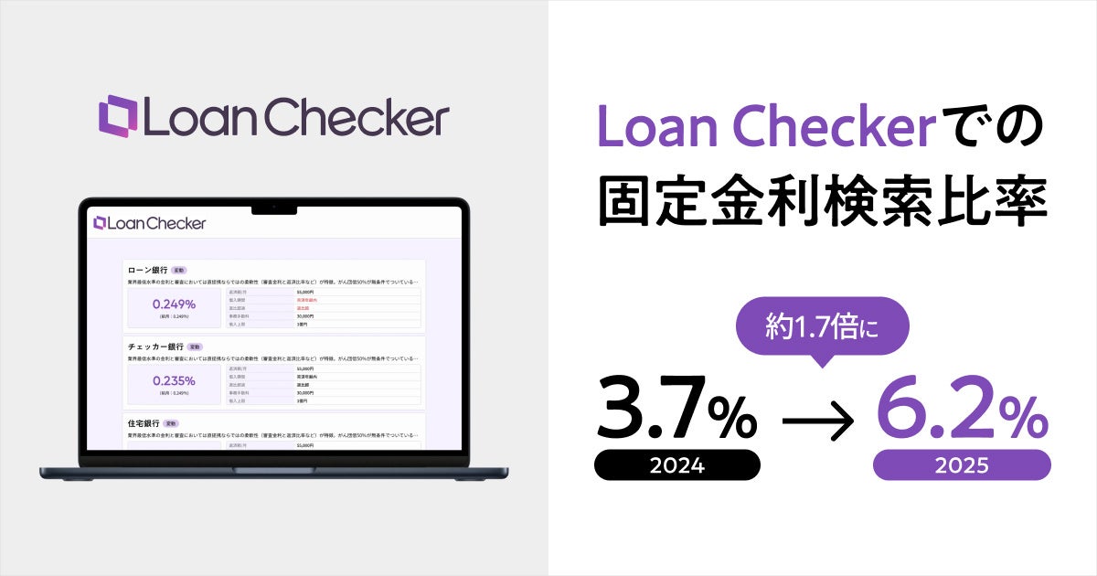 TERASSが開発・運営する住宅ローンデータベースサービス「Loan Checker」では、固定金利の住宅ローン検索数が昨年と比較して1.7倍に。金利上昇に伴い、お客様からのご希望も増えていることから、【フラット35】の取扱いを開始いたしました。