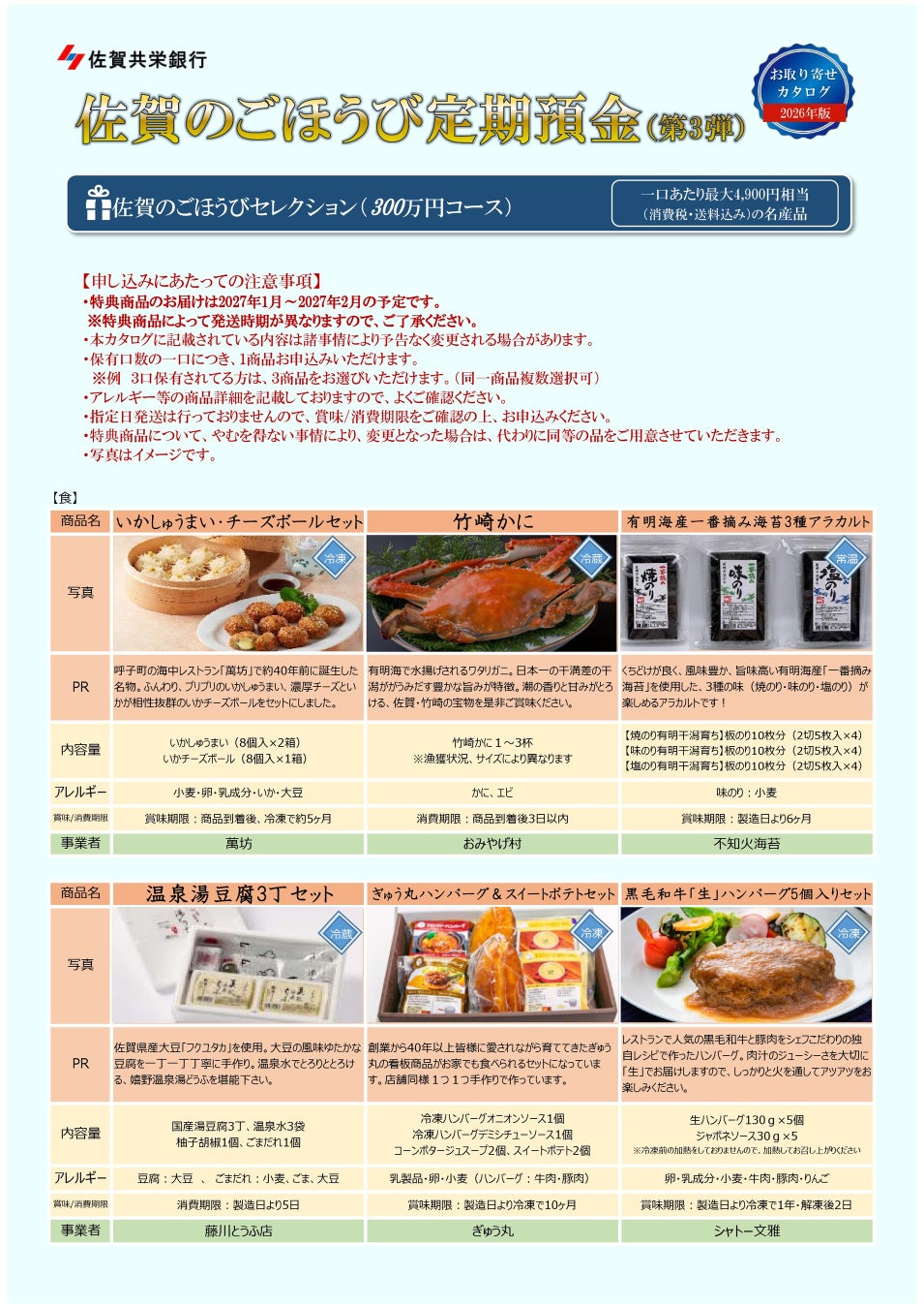 佐賀共栄銀行(本社:佐賀県佐賀市、頭取 二宮 洋二)は、佐賀県の名産品を全国へ届けるキャンペーン「佐賀のごほうび定期預金第2弾」につきまして、多くのお客様よりご好評をいただいたことから、第3弾の取り扱いを開始しました。