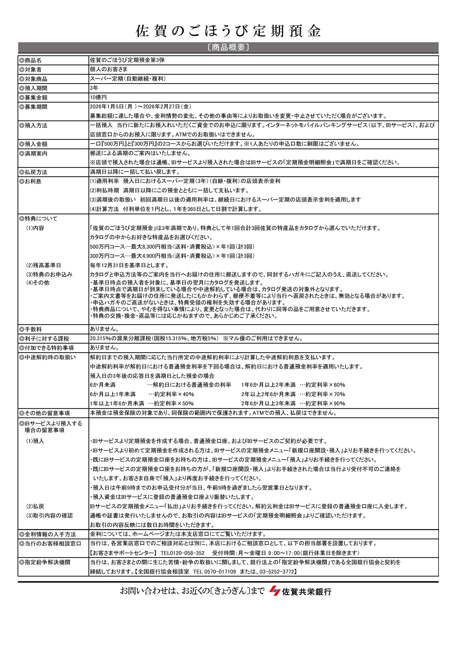 佐賀共栄銀行(本社:佐賀県佐賀市、頭取 二宮 洋二)は、佐賀県の名産品を全国へ届けるキャンペーン「佐賀のごほうび定期預金第2弾」につきまして、多くのお客様よりご好評をいただいたことから、第3弾の取り扱いを開始しました。