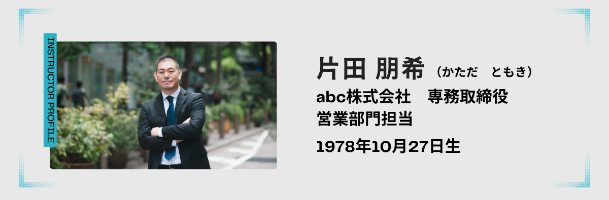 abc株式会社 専務取締役 片田朋希 |