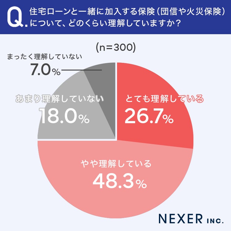 住宅ローンと同時に加入する保険については、「とても・やや理解している」が約7割を占める一方、「あまり・まったく理解していない」人も約4人に1人いました。