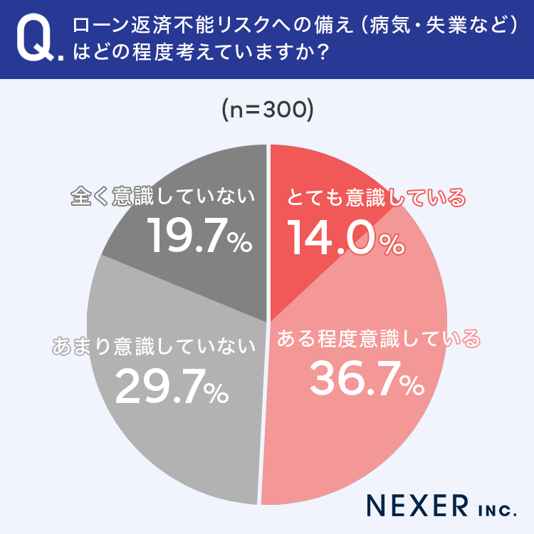 続いて、ローン返済不能リスクへの備え(病気・失業など)はどの程度考えているか聞いてみました。
