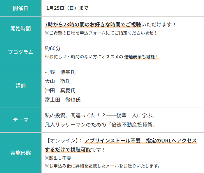 複数の投資家のノウハウをまるっと知ることができる、 ここだけのまたとない機会。