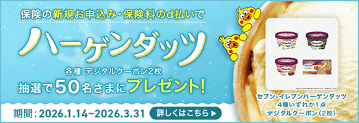 キャンペーン期間中に、キャンペーンサイトまたは「ドコモスマート保険ナビ」サイトからはなさく生命の保険商品をご契約いただき、保険料を「d払い」でお支払いされたお客さまの中から抽選で50名さまに、対象商品と引き換え可能なデジタルクーポンを2枚進呈します。 |