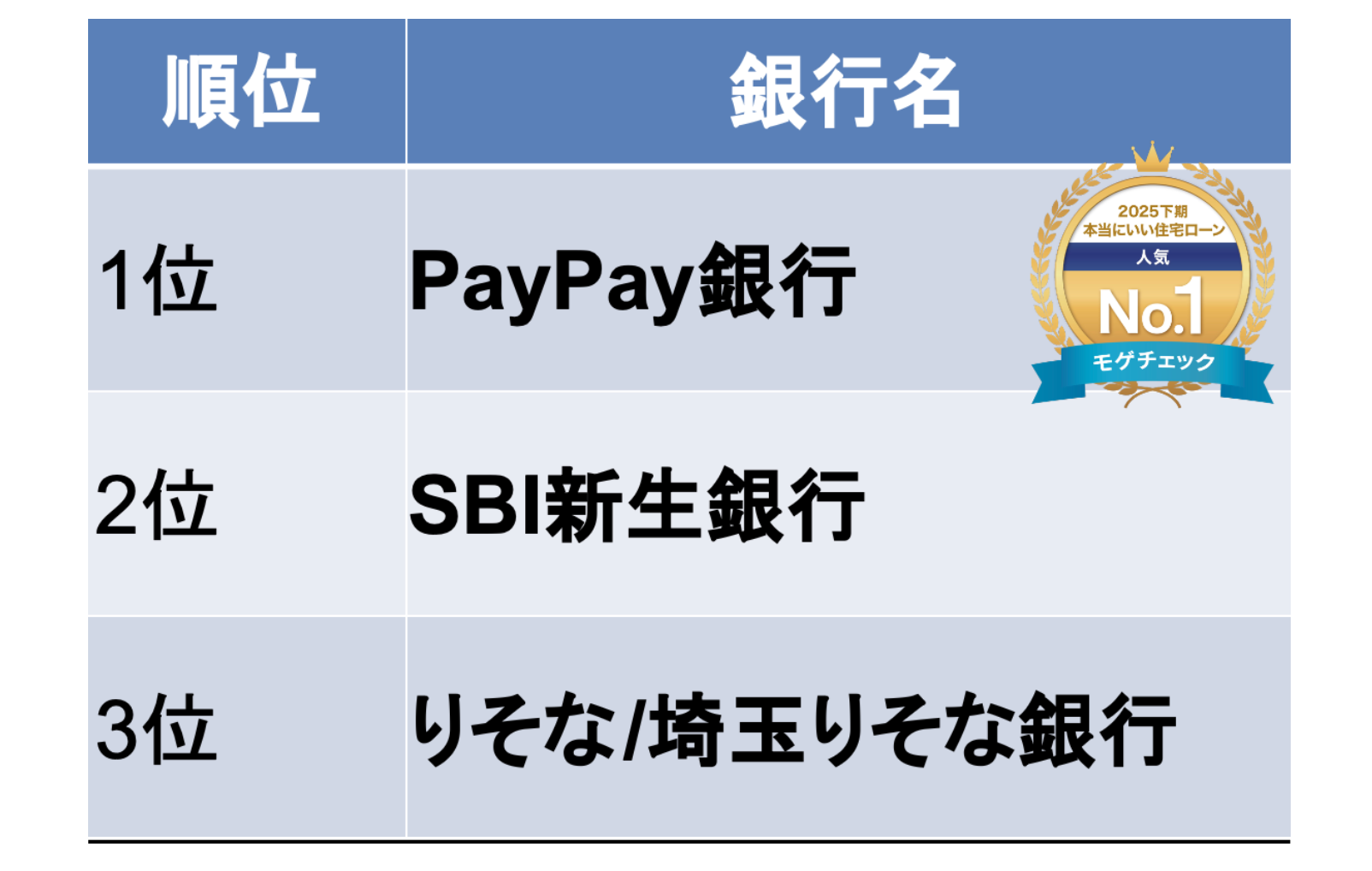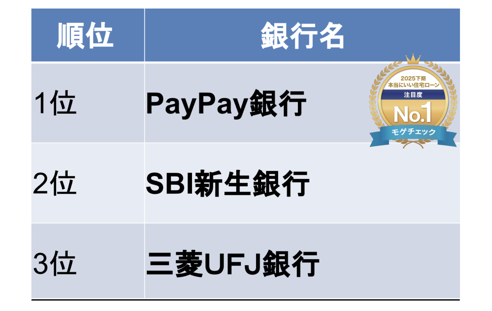 住宅ローン比較診断サービス「モゲチェック」を運営する株式会社MFS(本社:東京都千代田区、代表取締役CEO:中山田 明、以下「MFS」)は、モゲチェックユーザーを対象にアンケートを実施し、「ユーザーが選ぶ本当にいい住宅ローンランキング2025下期」(※)を集計しました。