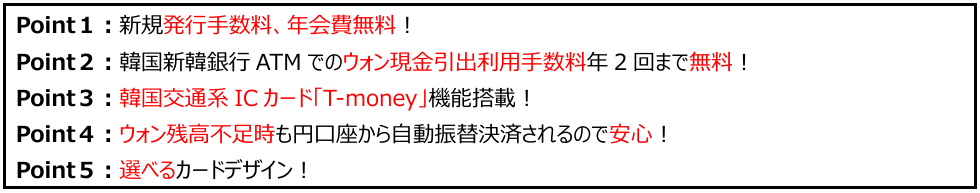 韓国新韓カードの加盟店でご利用いただける、韓国旅行専用のデビットカードです。