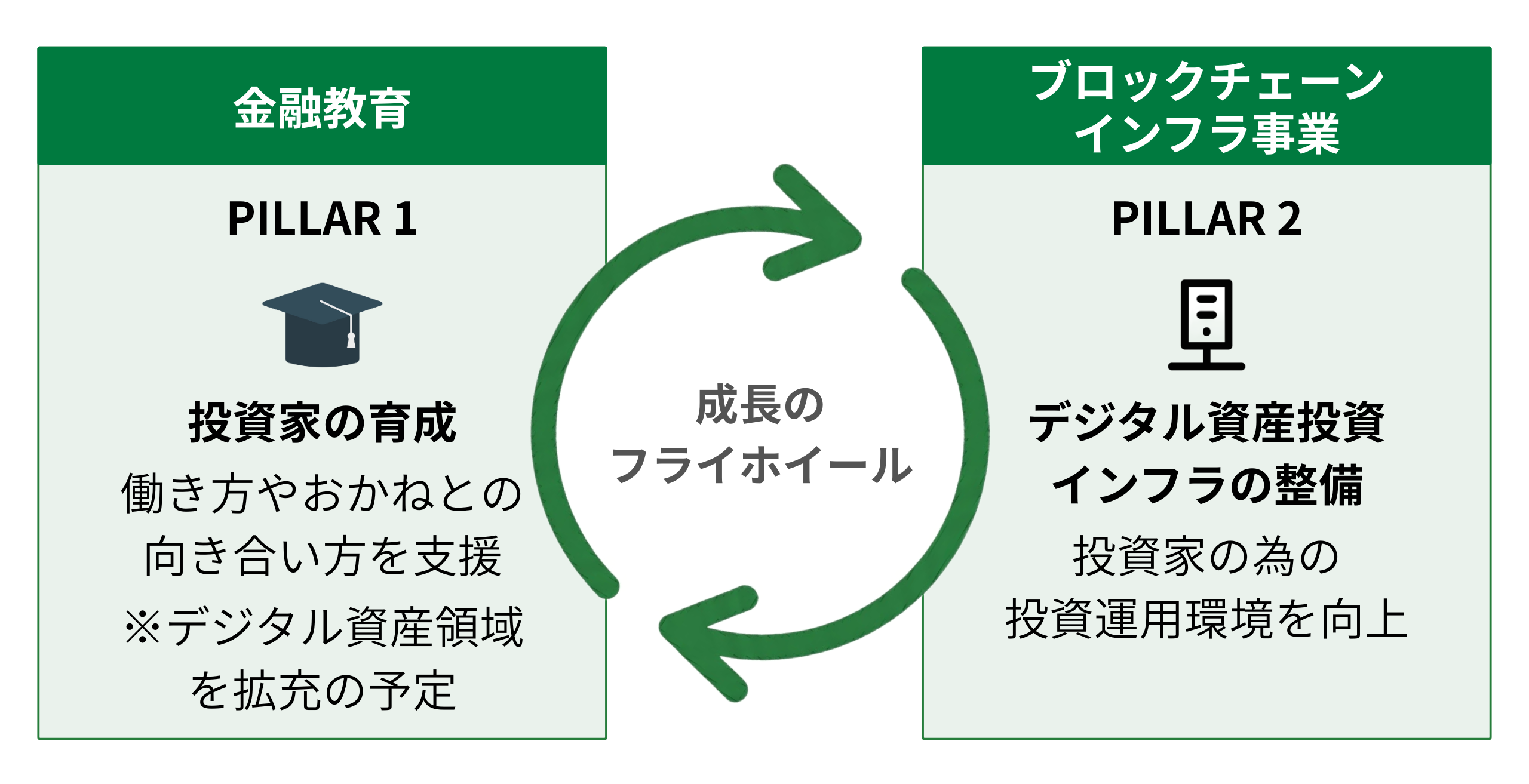 当社は、「金融教育」と「ブロックチェーン・インフラ」を二本柱とする中長期事業戦略(Two-Pillar Strategy)を掲げ、本事業をその Pillar 2 として推進する次第です。戦略全体の完成形を見据えつつ、実証と改善を繰り返しながら、アジャイルに実装を進める予定です。