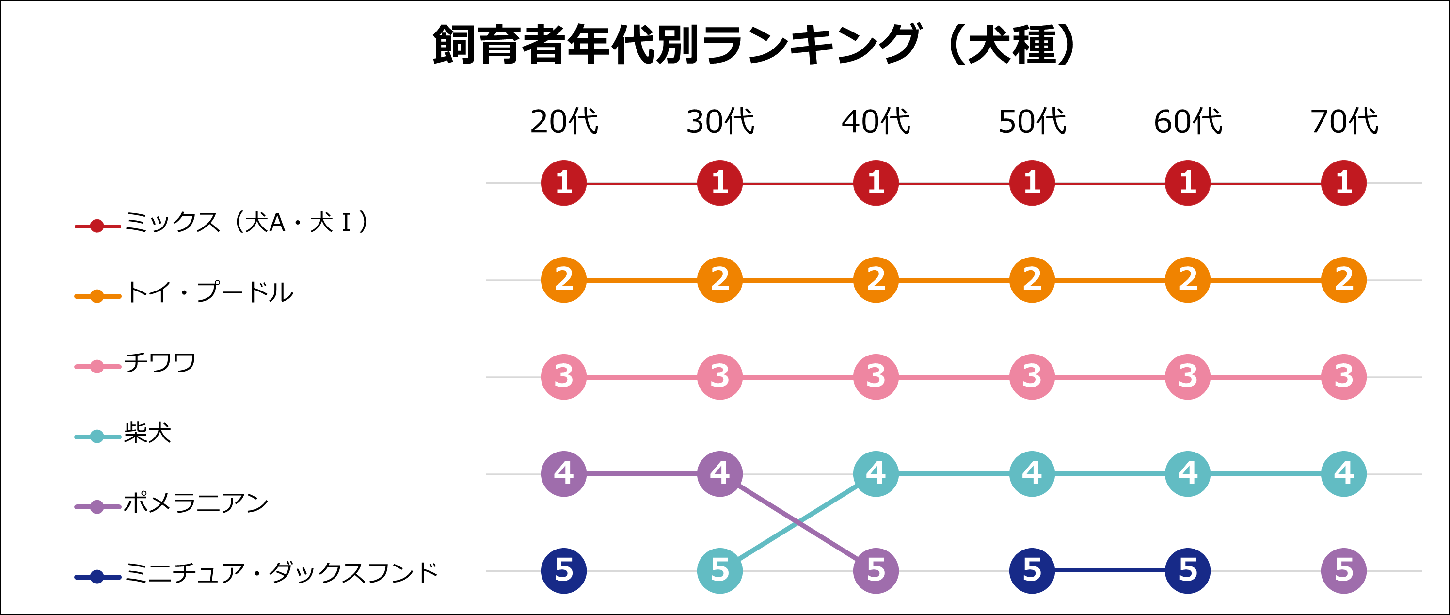 ◆(犬)30代以降で「柴犬」がトップ5にランクイン