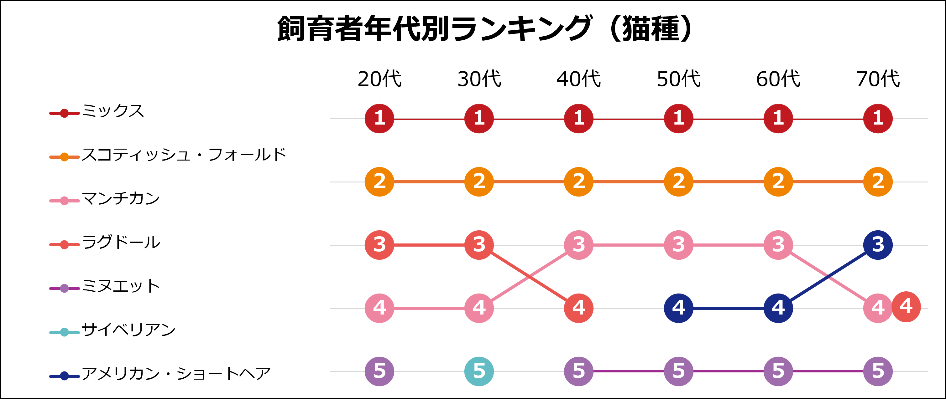 ◆(猫)50代以降で「アメリカン・ショートヘア」がトップ5にランクイン