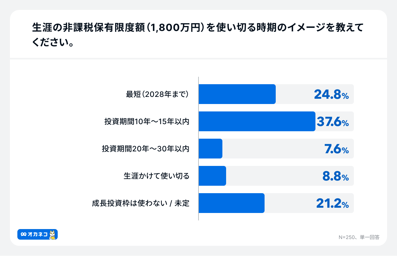 1,800万円の投資枠:最短5年で「枠埋め」は2割強、10年以上の長期計画が約半数に