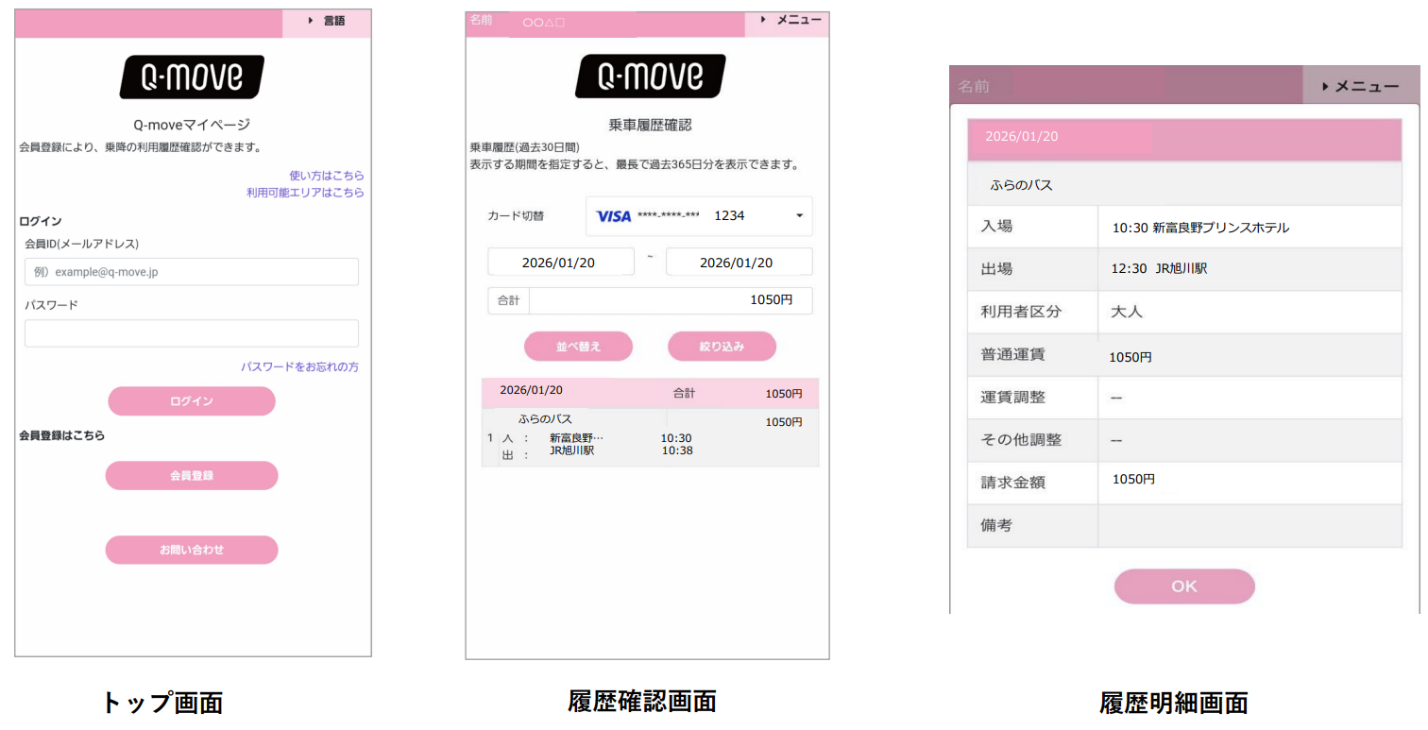 交通事業者向け決済及び認証のプラットフォームを提供するQUADRACのQ-moveサイト(https://q-move.info/)にアクセスいただき、「マイページ」の会員登録手続きの後ご覧いただけます。