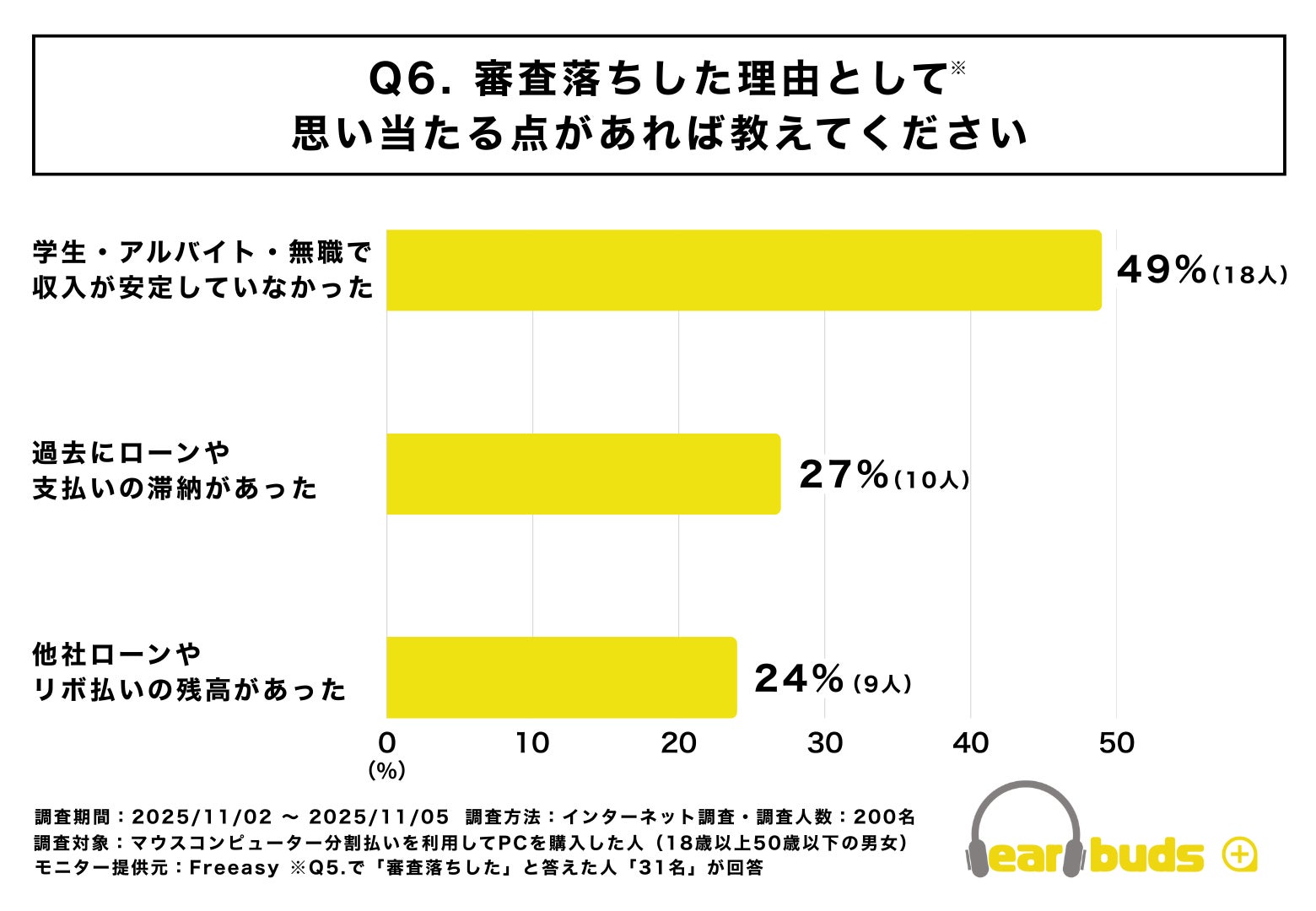 Q6:審査落ちの理由(自己申告、Q5で「審査落ち」と回答 n=37)