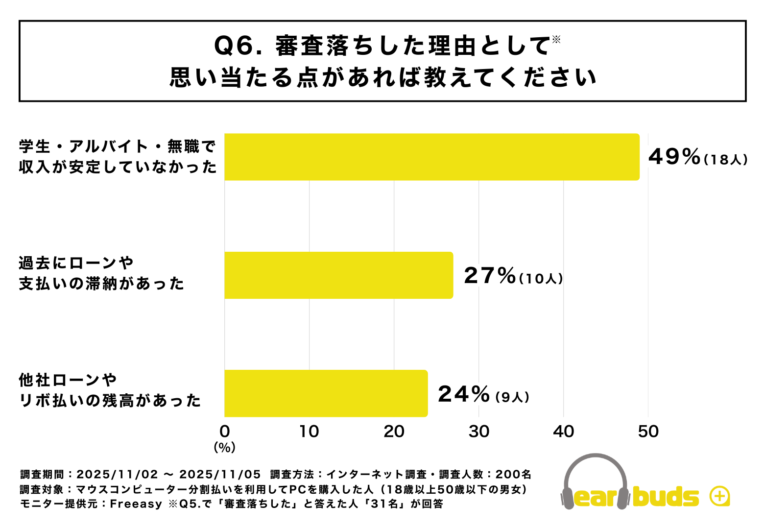 Q6:審査落ちの理由(自己申告、Q5で「審査落ち」と回答 n=37)