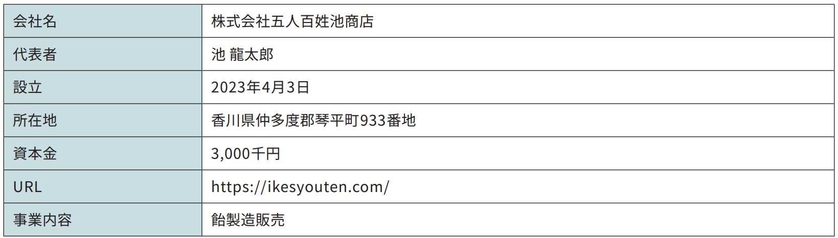 1245年(寛元3年)、香川県琴平町の金刀比羅宮の境内(参道)にて創業した「五人百姓池商店」(以下 同社)は、「こんぴらさん」の名で親しまれるこの地で、780年以上にわたり伝統のご利益飴「加美代飴(かみよあめ)」の製造・販売を続けています。五人百姓とは、1,000年超の歴史をもつといわれる金刀比羅宮が琴平町に来る際、お供してきた5つの家系のことであり、神事の手伝いを続けながら、今も参拝者向けに飴を作り続けている5軒の飴屋を指します。その家系のひとつが同社です。