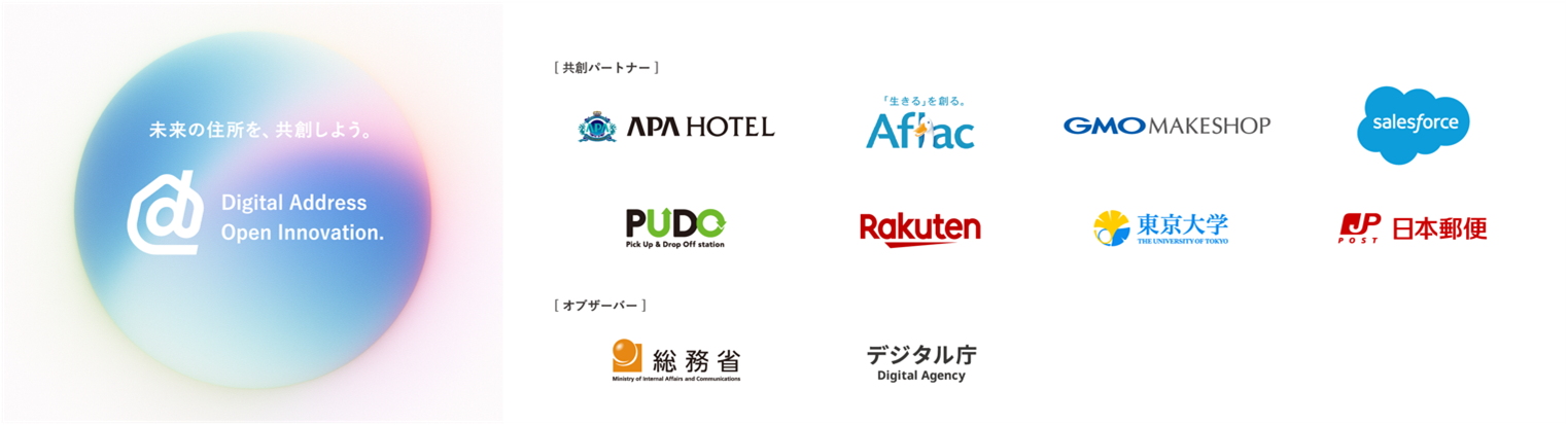 アパグループ(東京都港区、社長兼最高経営責任者(CEO) 元谷 一志)、アフラック生命保険株式会社(東京都新宿区、代表取締役社長 古出 眞敏)、GMOメイクショップ株式会社(東京都渋谷区、代表取締役社長CEO 向畑 憲良)、株式会社セールスフォース・ジャパン(東京都千代田区、代表取締役会長兼社長 小出 伸一)、Packcity Japan株式会社(東京都千代田区、代表取締役社長 CEO 柳田 晃嗣)、楽天グループ株式会社(東京都世田谷区、代表取締役会長兼社長 三木谷 浩史)、国立大学法人東京大学(東京都文京区、総長 藤井 輝夫)および日本郵便株式会社(東京都千代田区、代表取締役社長 小池 信也、以下「日本郵便」)の共創パートナーは、業界の枠を越えて住所の課題を解決することを目的とした、共創型コンソーシアム「デジタルアドレス・オープンイノベーション」を2026年1月23日(金)に発足いたします。