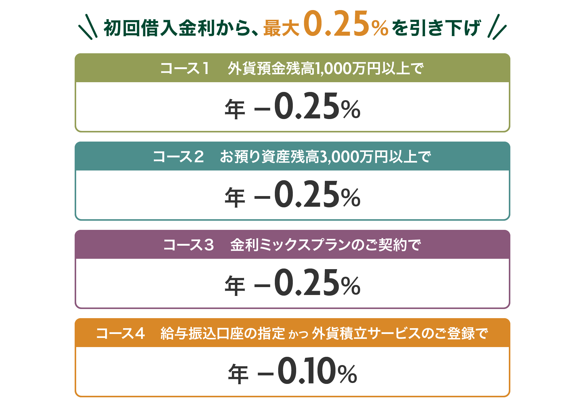 金利優遇コースの条件詳細、ご注意事項等はこちらをご確認ください。