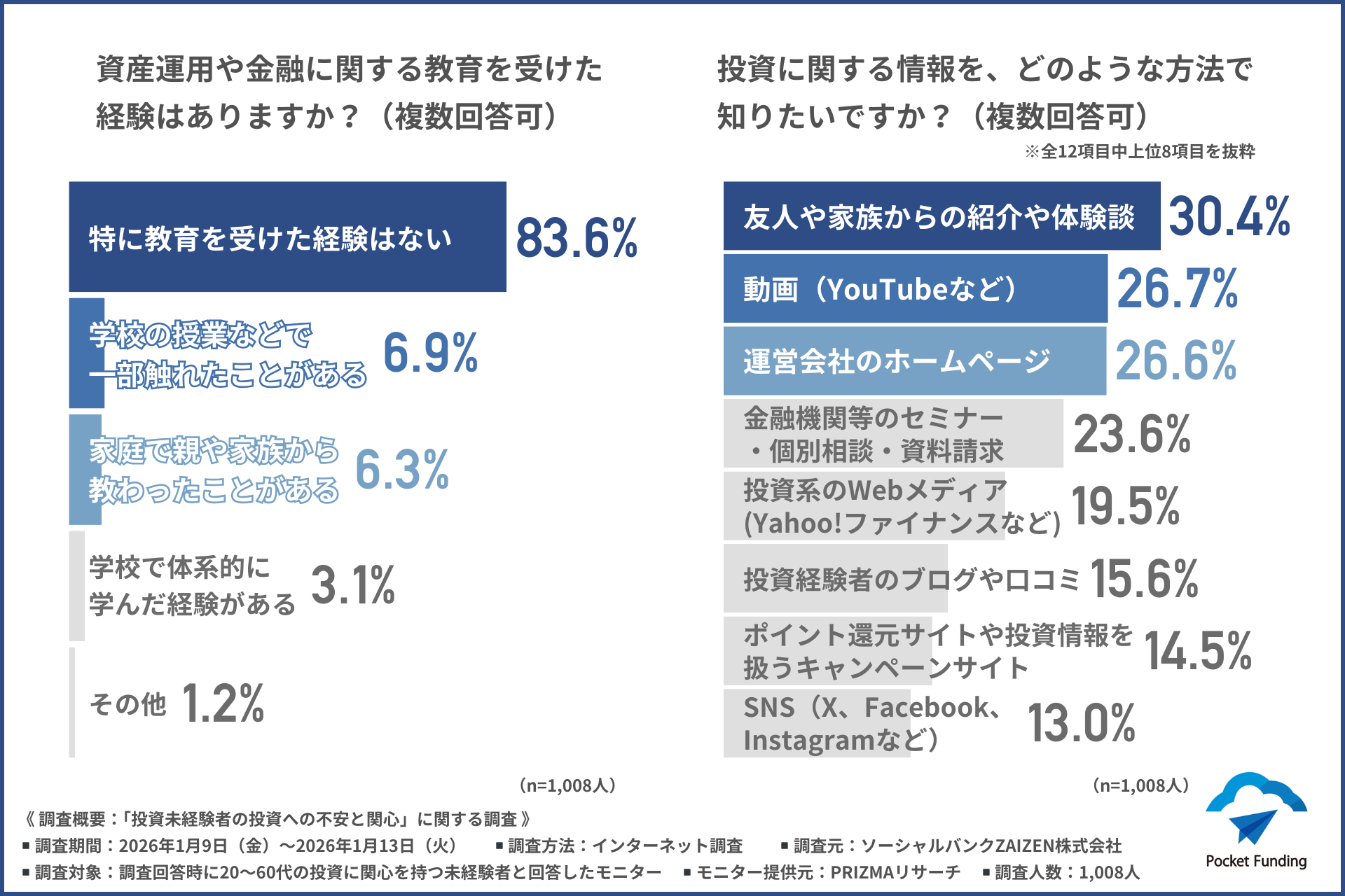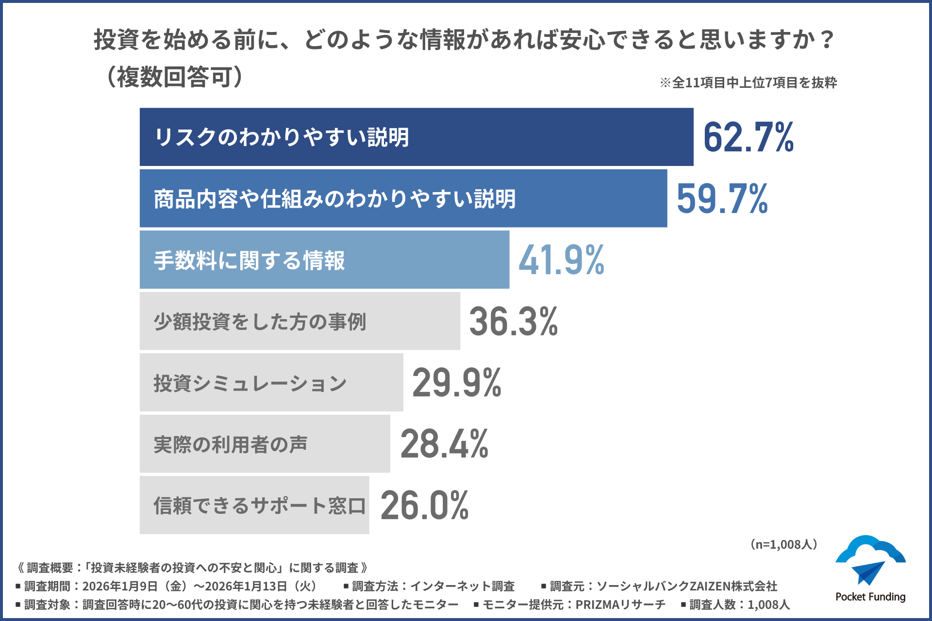 そこで今回、ソーシャルバンクZAIZEN株式会社(https://pocket-funding.jp/)は、20~60代の投資に関心を持つ未経験者を対象に、「投資未経験者の投資への不安と関心」に関する調査を行いました。