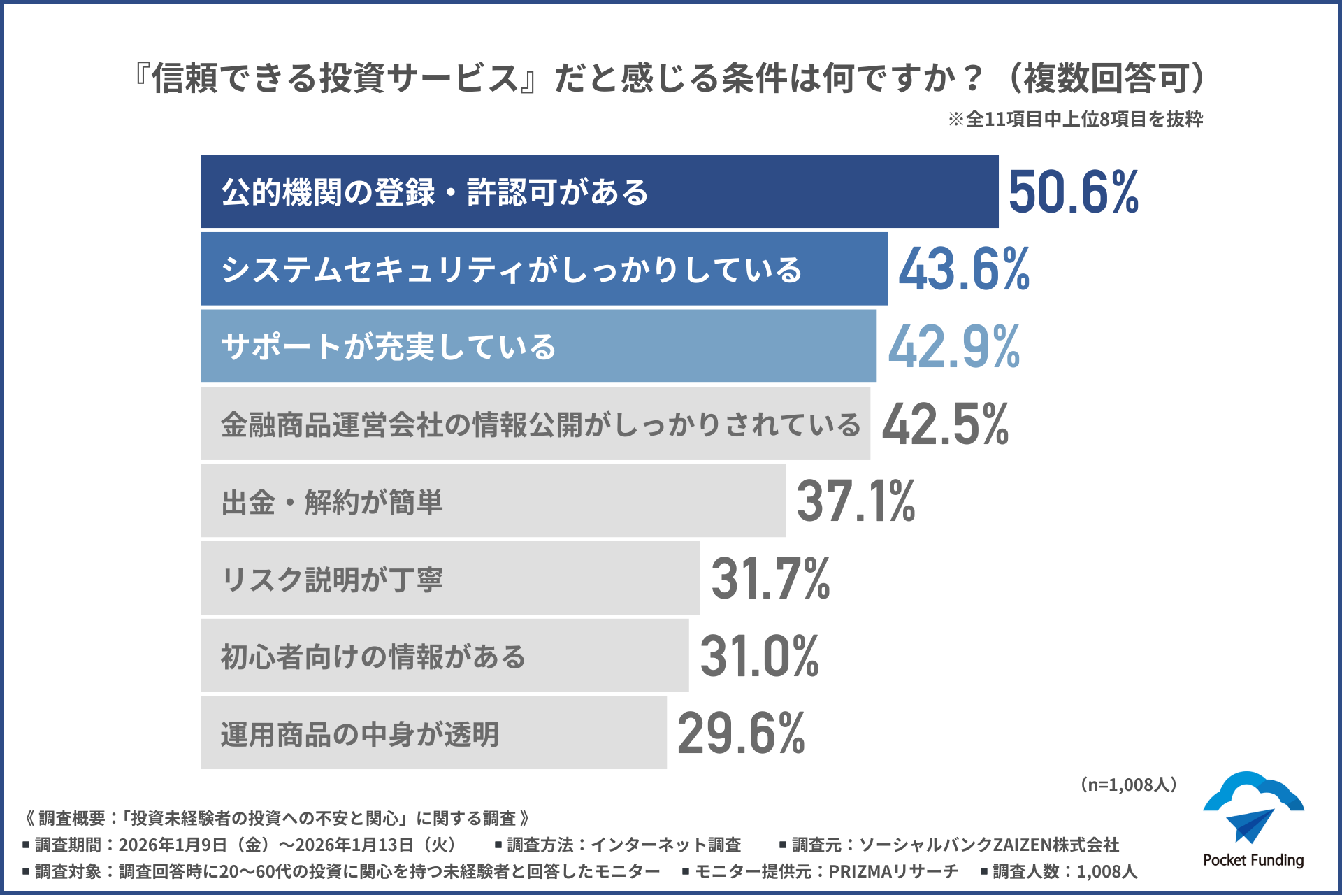 投資の内容そのものだけでなく、利用する過程で不安を感じずに済むかどうかも重視されていることがうかがえます。