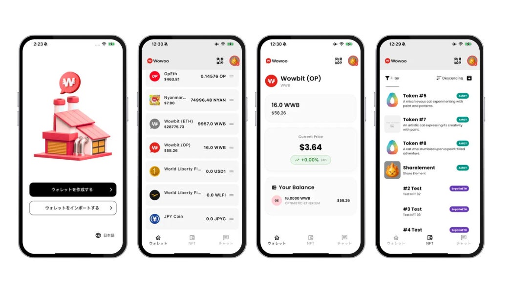 WOWOOは「善意や共感を経済的な価値に変える」という新しい発想から生まれたWeb3プロジェクトです。暗号資産の管理やチャット機能に加え、社会貢献の行動を記録して「信用資本」として可視化できるのが特徴です。