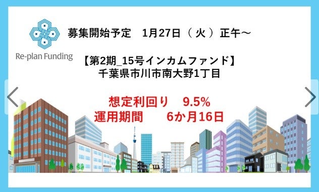 2026年1月27日(火)正午より15号ファンドの募集がスタートしておりますので、興味がありましたらご確認の程宜しくお願い致します。
