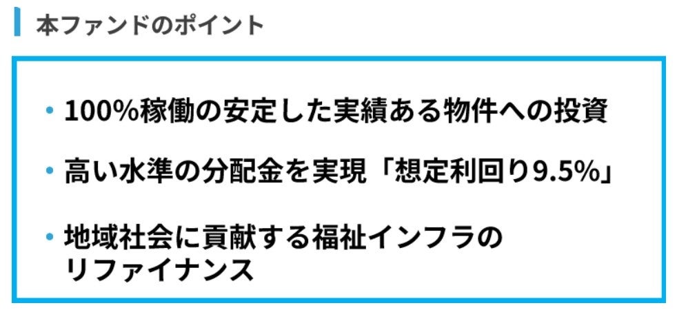 特に、対象不動産を障がい福祉用途の不動産に特化している点が特徴です。
