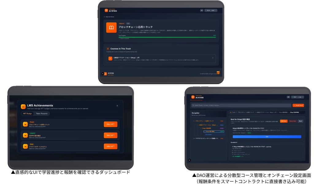 特定のNFT保有者に対して「初級コースの免除(スキップ権)」を付与するなど、ブロックチェーン上の資産が実世界の学習効率向上に直結するユーティリティを実装しています。