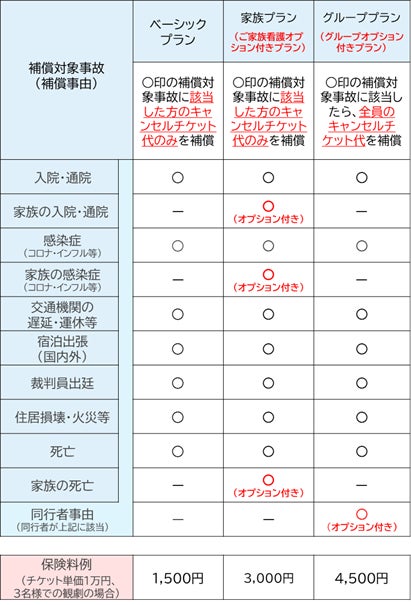 ※「チケット保険」の正式名称は「快適生活応援保険(キャンセル費用補償特約付帯)」です。