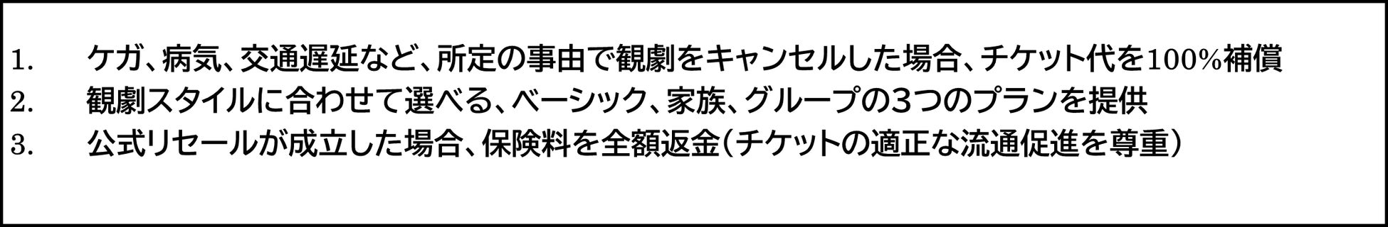 ※保険金支払額、保険料などは、観劇チケットの場合となり、他のサービスにおける保険金支払額、保険料とは異なります。