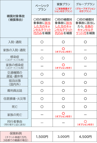 ※「チケット保険」の正式名称は「快適生活応援保険(キャンセル費用補償特約付帯)」です。