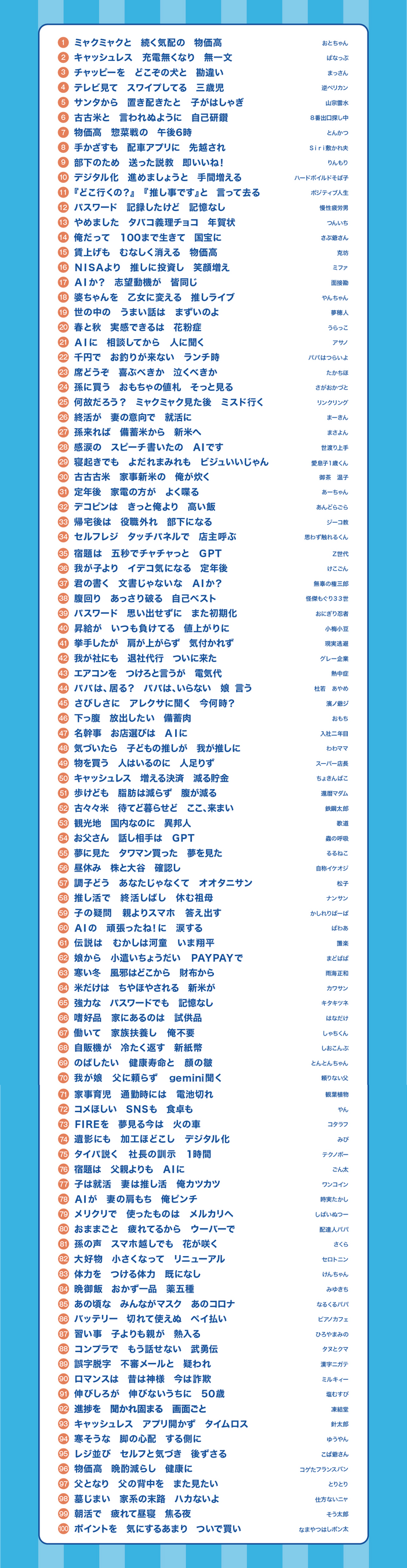 2025年『サラっと一句!わたしの川柳コンクール』優秀100句決定!