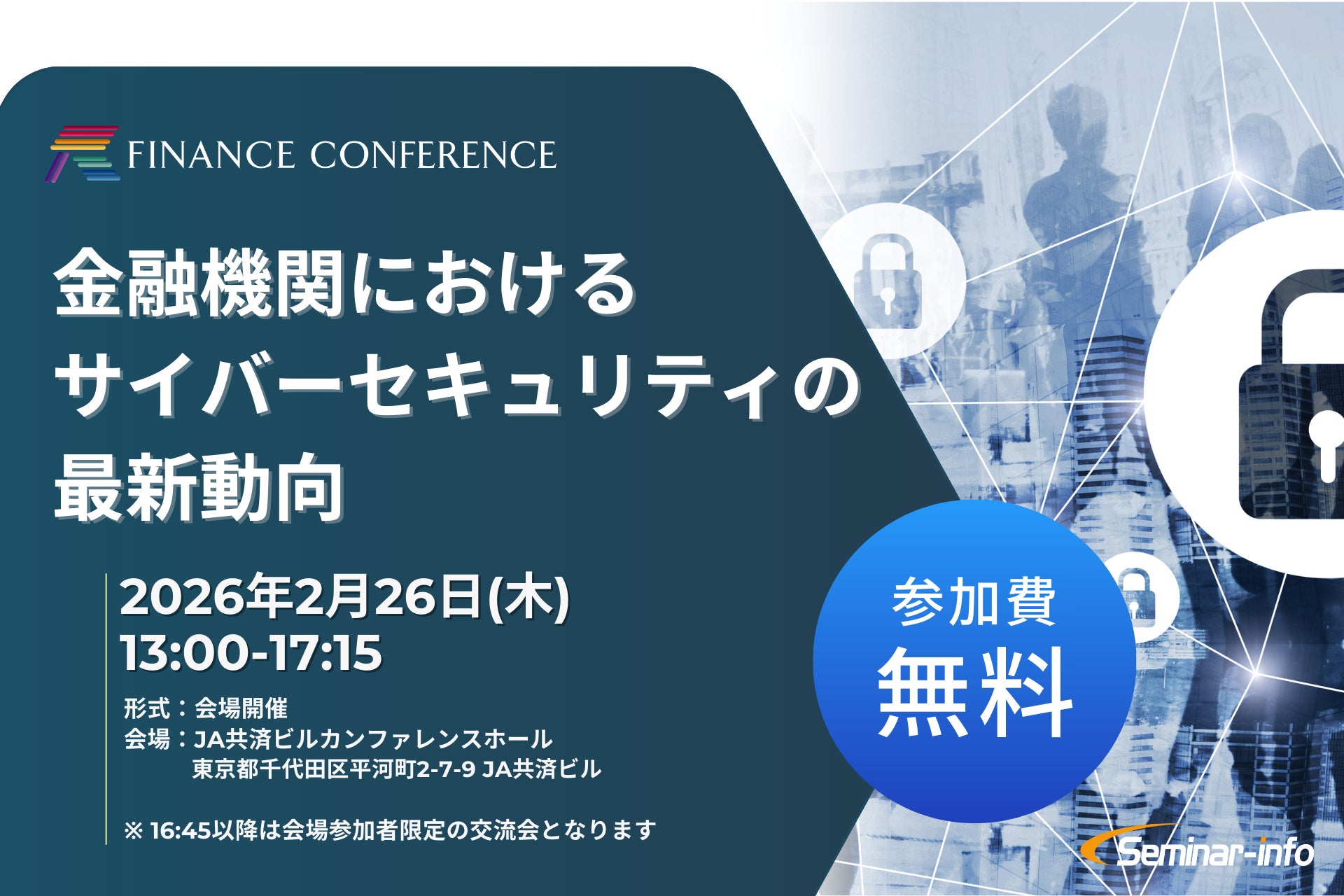 株式会社セミナーインフォ(本社:東京都千代田区 代表:小西 亘)は、2026年2月26日(木)にFINANCE CONFERENCE「金融機関におけるサイバーセキュリティの最新動向」を開催いたします。