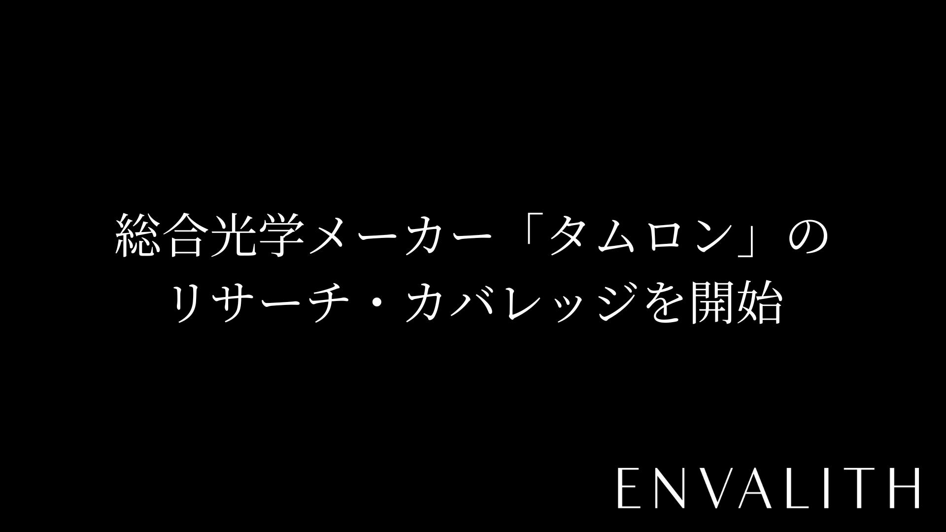 次世代型の株式リサーチ・プラットフォームを展開する株式会社エンヴァリス(本社:東京都渋谷区、代表取締役:河井浩一、以下「当社」)は、株式会社タムロン(本社:埼玉県さいたま市、代表取締役社長: 桜庭 省吾、証券コード:7740、以下「タムロン」)のリサーチ・カバレッジを開始することをお知らせいたします。