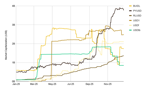 図3:新たに6種類のステーブルコインが時価総額10億米ドル超えを記録 出所:Artemis、Binance Research(2025年12月31日時点)