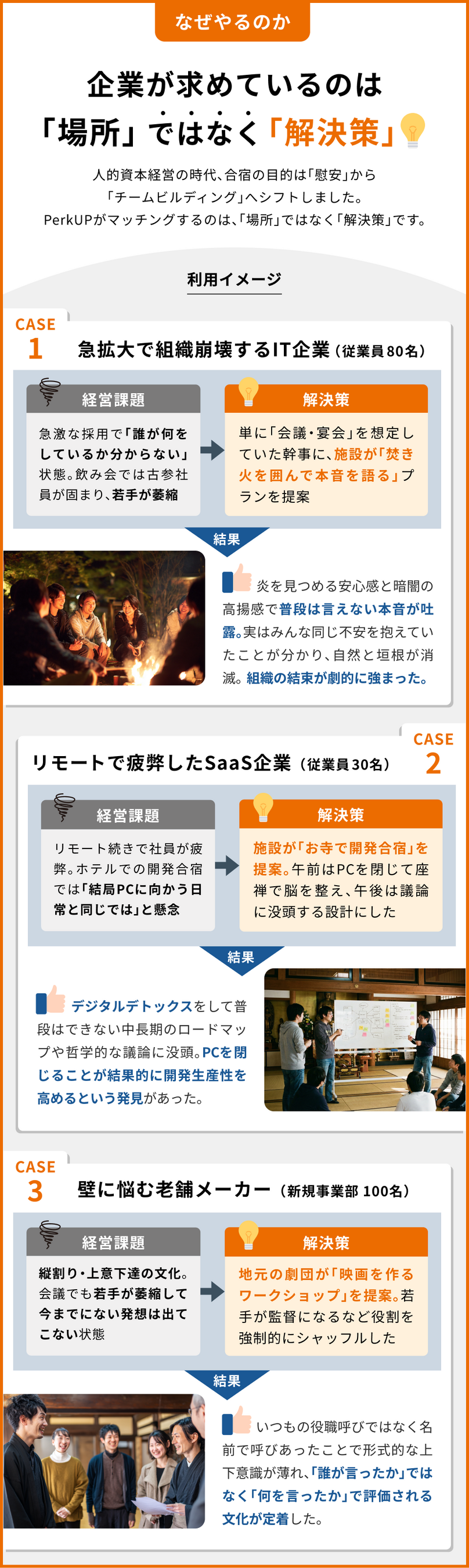 ・事業概要:法人合宿・グループ旅行に特化した一括手配プラットフォームの運営・開発