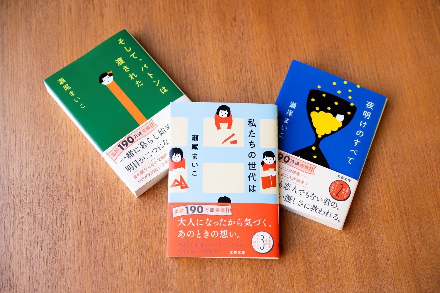 『そして、バトンは渡された』『夜明けのすべて』『私たちの世代は』の三作品は、いずれも家族や身近な人との繋がりを描いた長編小説です。「やさしさの三部作」としてお楽しみください。