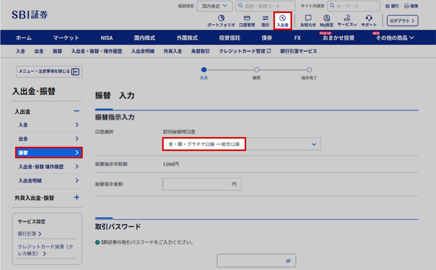 4. 資金振替機能をメインサイト内に集約