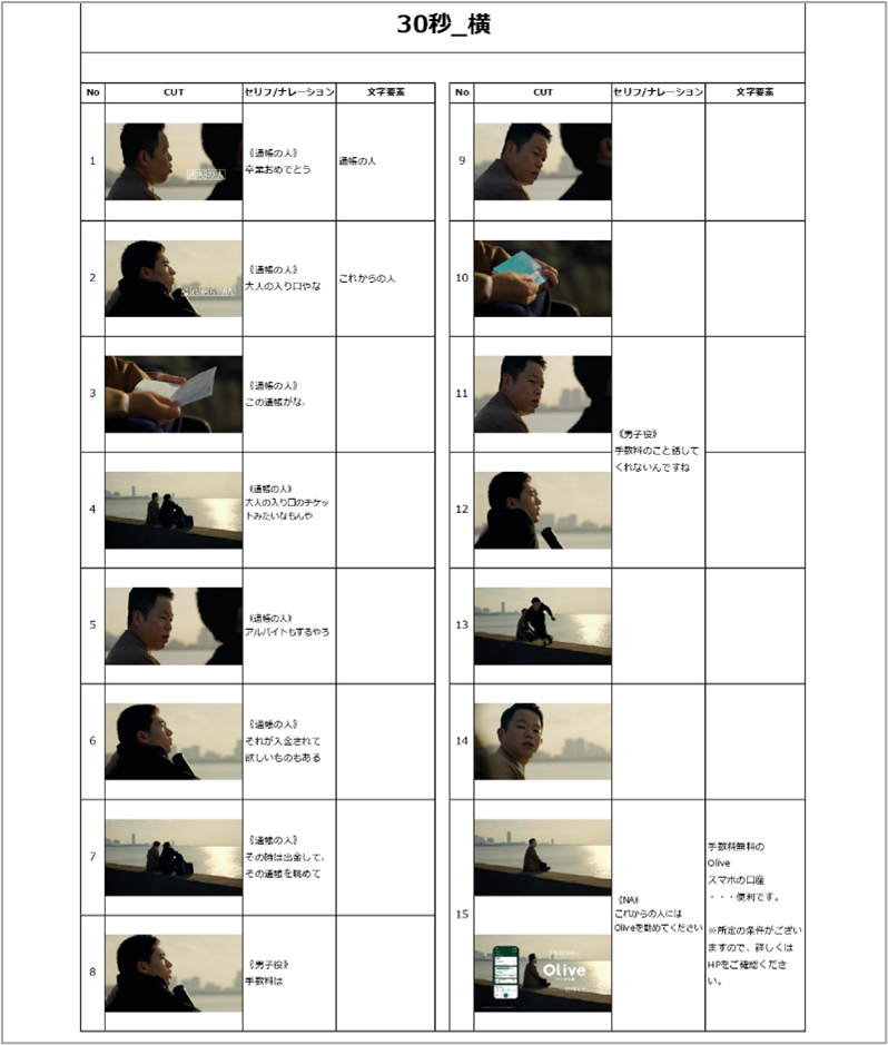 就職した若者に津田さんが通帳で給料を実感する価値を説きますが、「ポイントは?」と合理的に返されます。津田さんは戸惑い「贅沢言うたらあかんよ」としか返せないでいると、若者は前を向いてしまいます。「Olive」は給与振込でポイントがつくため、毎月の給与受取が楽しみに変わることを描きました。