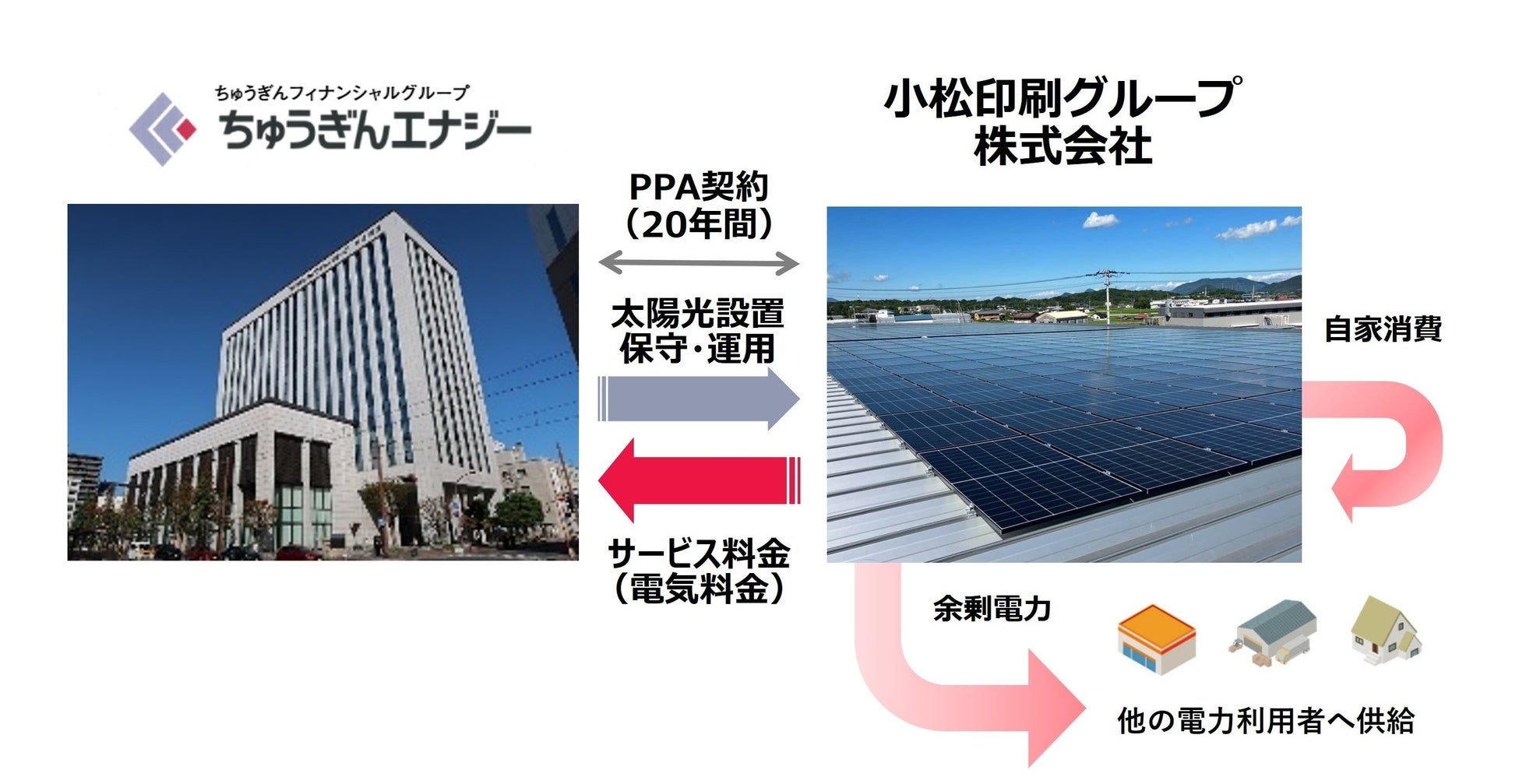 株式会社ちゅうぎんエナジー(岡山市 代表取締役 松岡 信一)は、小松印刷グループ株式会社(代表取締役 小松 秀敏)と太陽光PPA(※)サービス契約にもとづき太陽光発電設備を設置し、再エネの供給を開始いたしましたのでお知らせいたします。