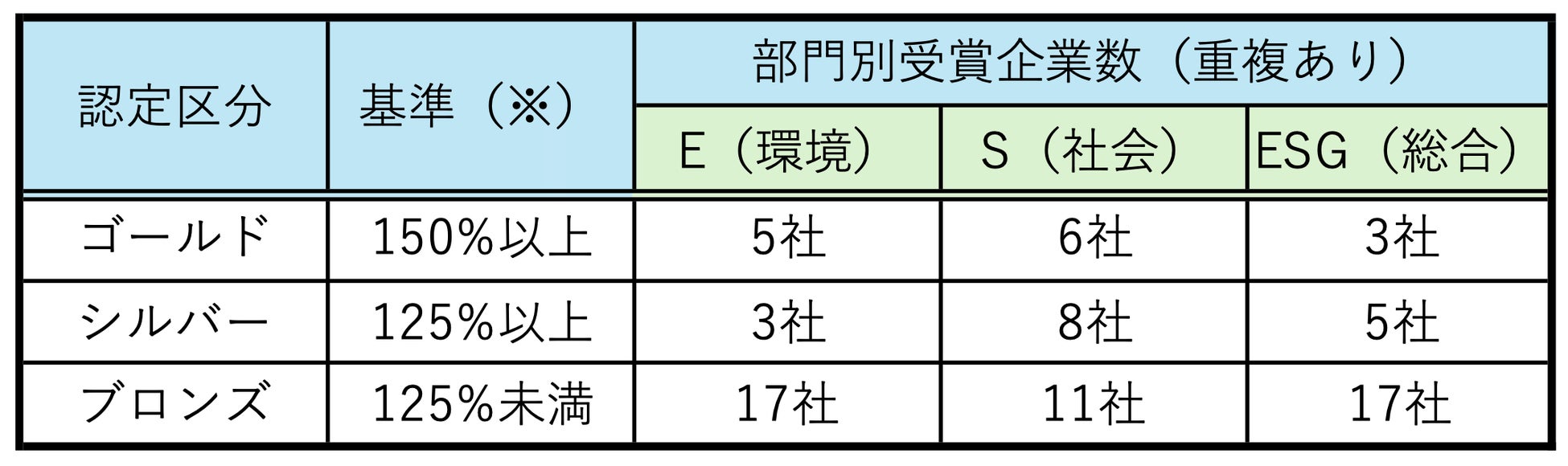 ※シルバー、ブロンズは認定社数のみ公表