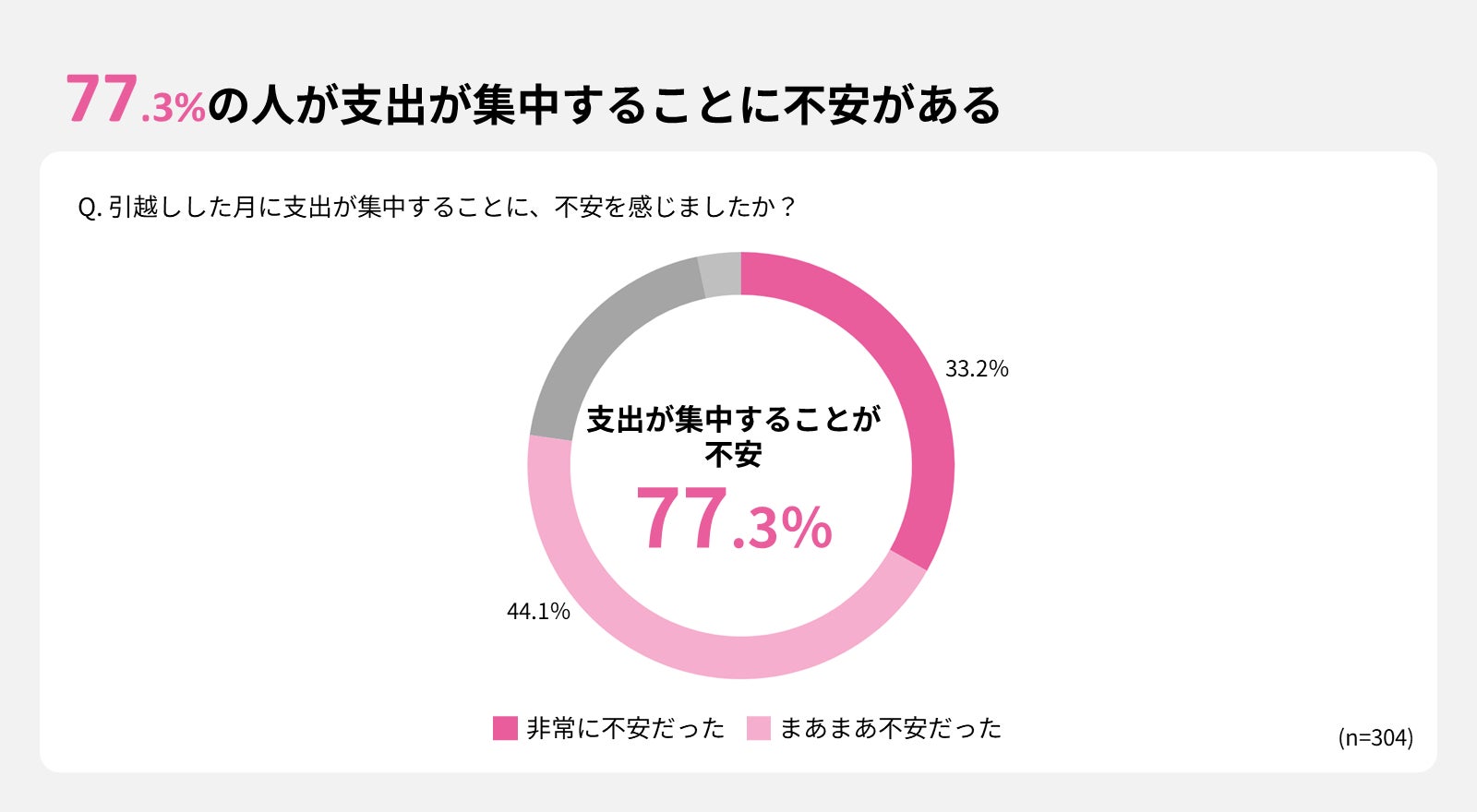 ・ 引越し時、「同月に出費が集中することに不安を感じた」人は77.3%