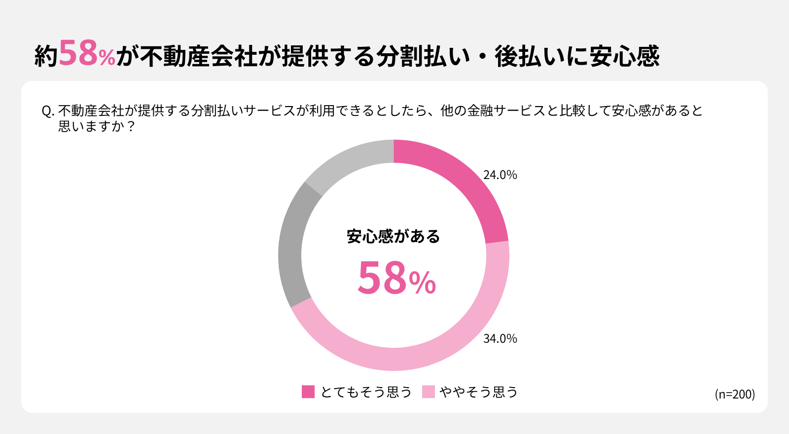 加えて本調査では、不動産会社が提供する分割・後払いに安心感があると回答した人が58%に上りました。