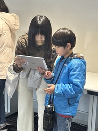 災害対策シミュレーションゲーム体験では、二人一組でタブレットを使い、お互いにサポートし合いながら、ゲーム形式で学びました。