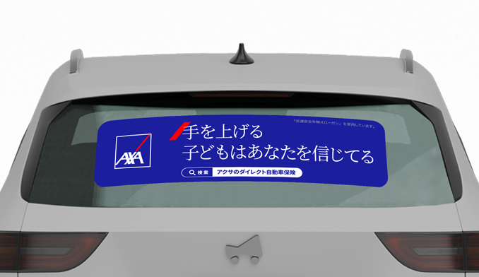 本キャンペーンは、アクサ損害保険株式会社による安全運転啓発の取組みの一環として実施されます。安全運転を呼びかけるステッカー(下図デザイン)を自家用車のリアウィンドウに貼ることで、この取組みにご協力いただけるドライバー300名を全国から募集します。