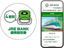 割引券1枚でJR東日本営業路線内の片道運賃および片道料金を4割引でご提供します。JRE BANKの概要やご利用特典につきましては、JRE BANKウェブサイトをご覧ください。
