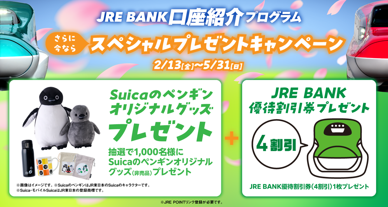 ○JR東日本は、㈱ビューカードとともに、「JRE BANK口座紹介プログラム スペシャルプレゼントキャンペーン」を2026年2月13日より実施します。